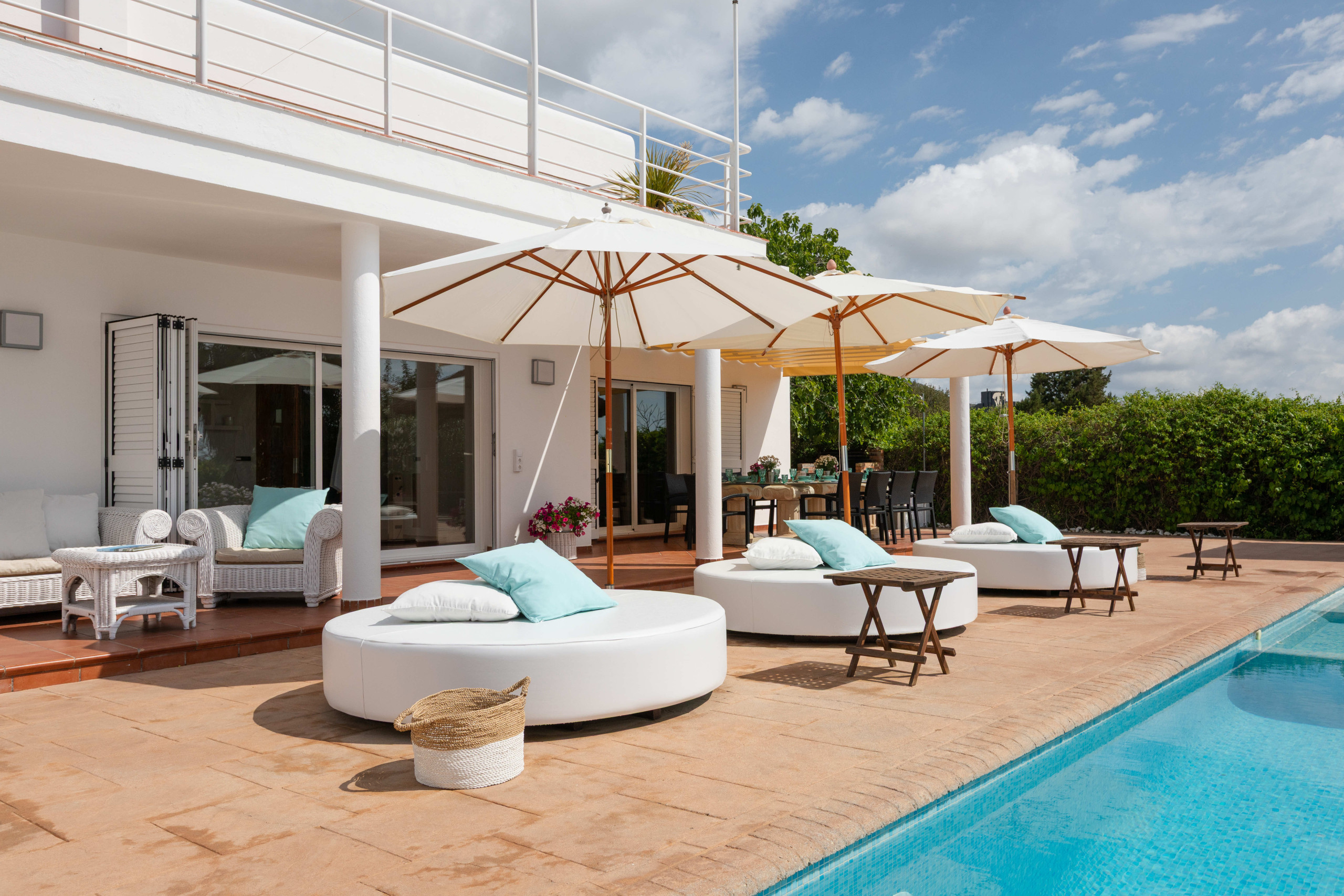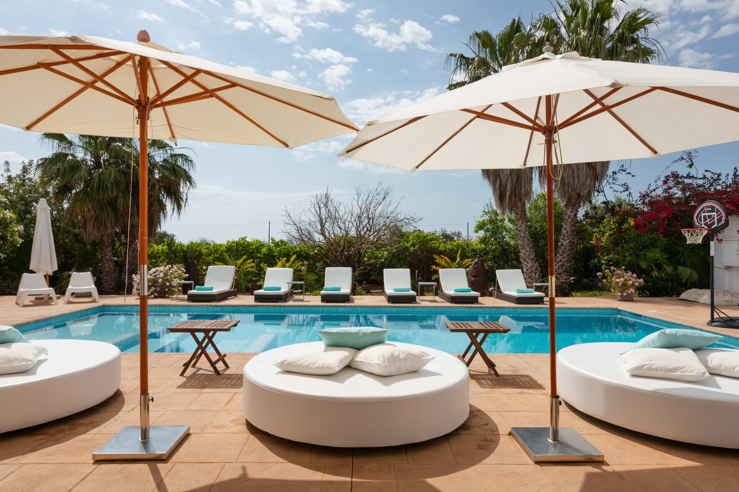 - Outdoor furniture (Balinese beds, sunbeds, sunshades)